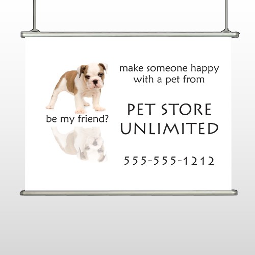 This design has a white background with an adorable picture of a puppy on a reflective surface. The text is black with areas for your editable information such as your business name, slogan, and phone number.