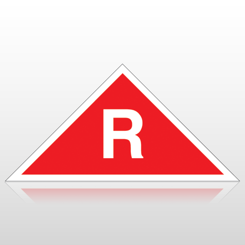 N.J.A.C. 5:70-2.20(a)1. "The emblem shall be of a bright and reflective color, or made of reflective material. The shape of the emblem shall be an isosceles triangle and the size shall be 12 inches horizontally by 6 inches vertically. The following letters, of a size and color to make them conspicuous, shall be printed on the emblem, as shown in diagram below."