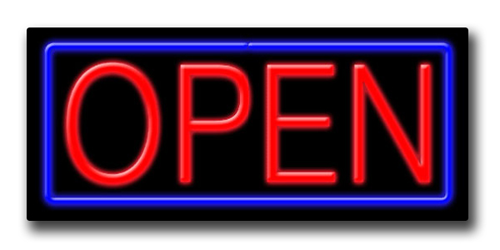 This is a Red Neon Rectangle "Open" Sign. Neon Signs are one of the best and brightest forms of advertising, and last for many years when cared for properly.