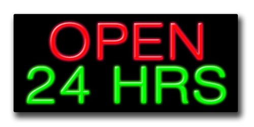 This is a Red/Green Neon "Open 24 Hrs." Sign. Neon Signs are one of the best and brightest forms of advertising, and last for many years when cared for properly.