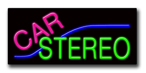 This is a Pink/Green Neon "CAR STEREO" Sign. Neon Signs are one of the best and brightest forms of advertising, and last for many years when cared for properly.