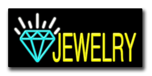 This is a Yellow Neon "JEWELRY" Sign. Neon Signs are one of the best and brightest forms of advertising, and last for many years when cared for properly.