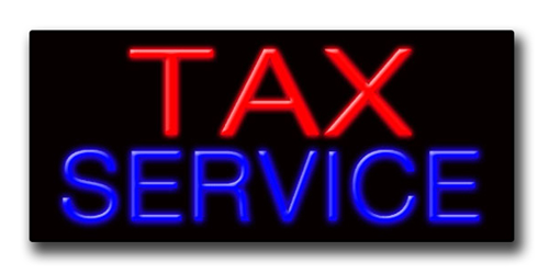 This is a Red/Blue Neon "TAX SERVICE" Sign. Neon Signs are one of the best and brightest forms of advertising, and last for many years when cared for properly.
