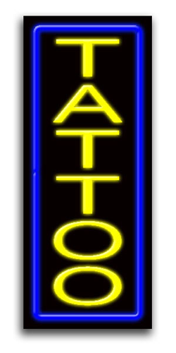 This is a Yellow Vertical Neon "TATTOO" Sign. Neon Signs are one of the best and brightest forms of advertising, and last for many years when cared for properly.