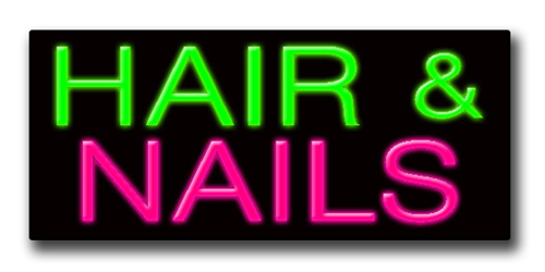 This is a Green/Pink Neon "HAIR & NAILS" Sign. Neon Signs are one of the best and brightest forms of advertising, and last for many years when cared for properly.