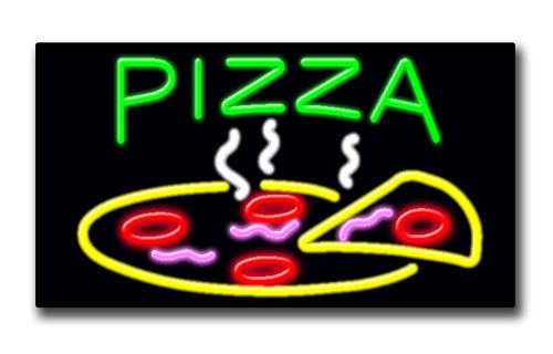 This is a Green Neon "PIZZA" Sign. Neon Signs are one of the best and brightest forms of advertising, and last for many years when cared for properly.