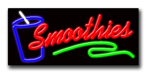 This is a Neon Red "SMOOTHIES " Sign. Neon Signs are one of the best and brightest forms of advertising, and last for many years when cared for properly.