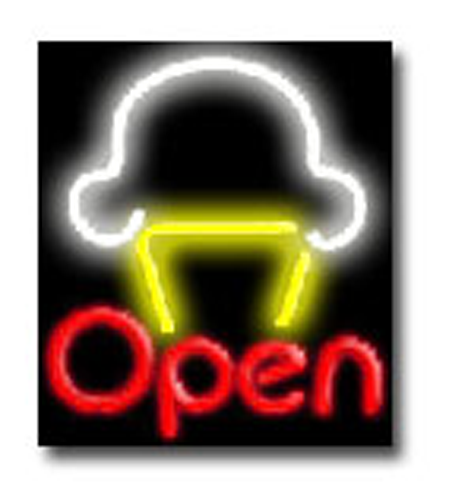 This is a Neon Red "OPEN ICE CREAM" Sign. Neon Signs are one of the best and brightest forms of advertising, and last for many years when cared for properly.