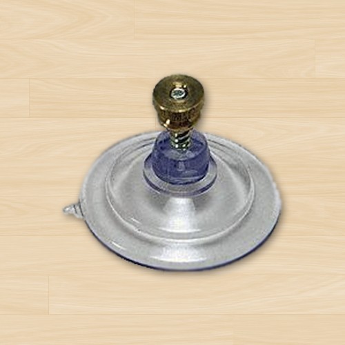 Large suction cup with stud and nut for mounting signs to windows.