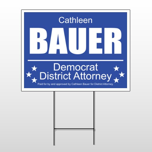 This design has a dark blue background along with a pattern of white stars surrounding the text. The text is white, yellow, and blue with areas for your editable election information such as your name, advertising reference, and the job title your going for.