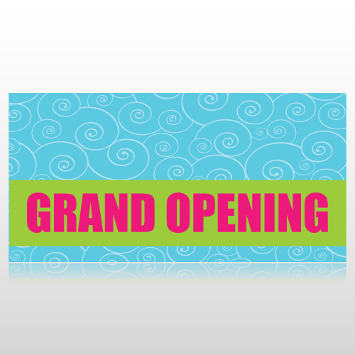 Are you opening a new business? Let everyone know with a custom grand opening banner. Grand opening banners can be customized to any size, the larger the banner, the further away it can be read. Put one across the front of your building to get attention and announce that there is a new store in town. For best visibility, we recommend a grand opening banner that is at least 10 foot long, but you can actually order one up to 240 feet long! This banner design has swirls, but you can change your design to match your store decor. We can print any color, one color or full color is the same price, so make it bright and colorful!