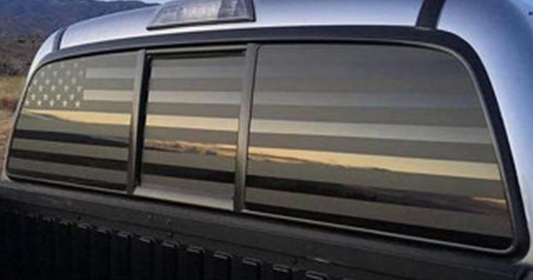 Watch our quick video for inspiration and ideas of ways you can transform the look of your truck’s rear window. Perforated truck decals are super popular for adding a custom design to the rear window of your truck. You can choose from one way vision (perforated) vinyl or custom die-cut lettering and graphics. The one way vision is best for a full color mural. This way you can still see out your back window. But we also offer cool chrome, gold leaf, carbon fiber, matte black and other die-cut vinyls. Our rear window truck decals are 100% customizable and our designers will work with you to get the exact look you are after. Our rear window truck graphics are printed on premium name brand vinyl materials such as 3M, Oracal and Clear Focus(perforated), that will last for years. It is waterproof and durable and even can protect your glass from chips.