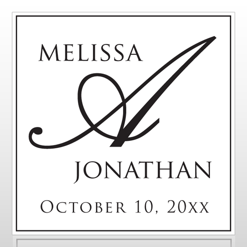 This design has a white background with a black outline. It has a large letter for your last initial. The text is black and has an area for your first two initials as well as the date.